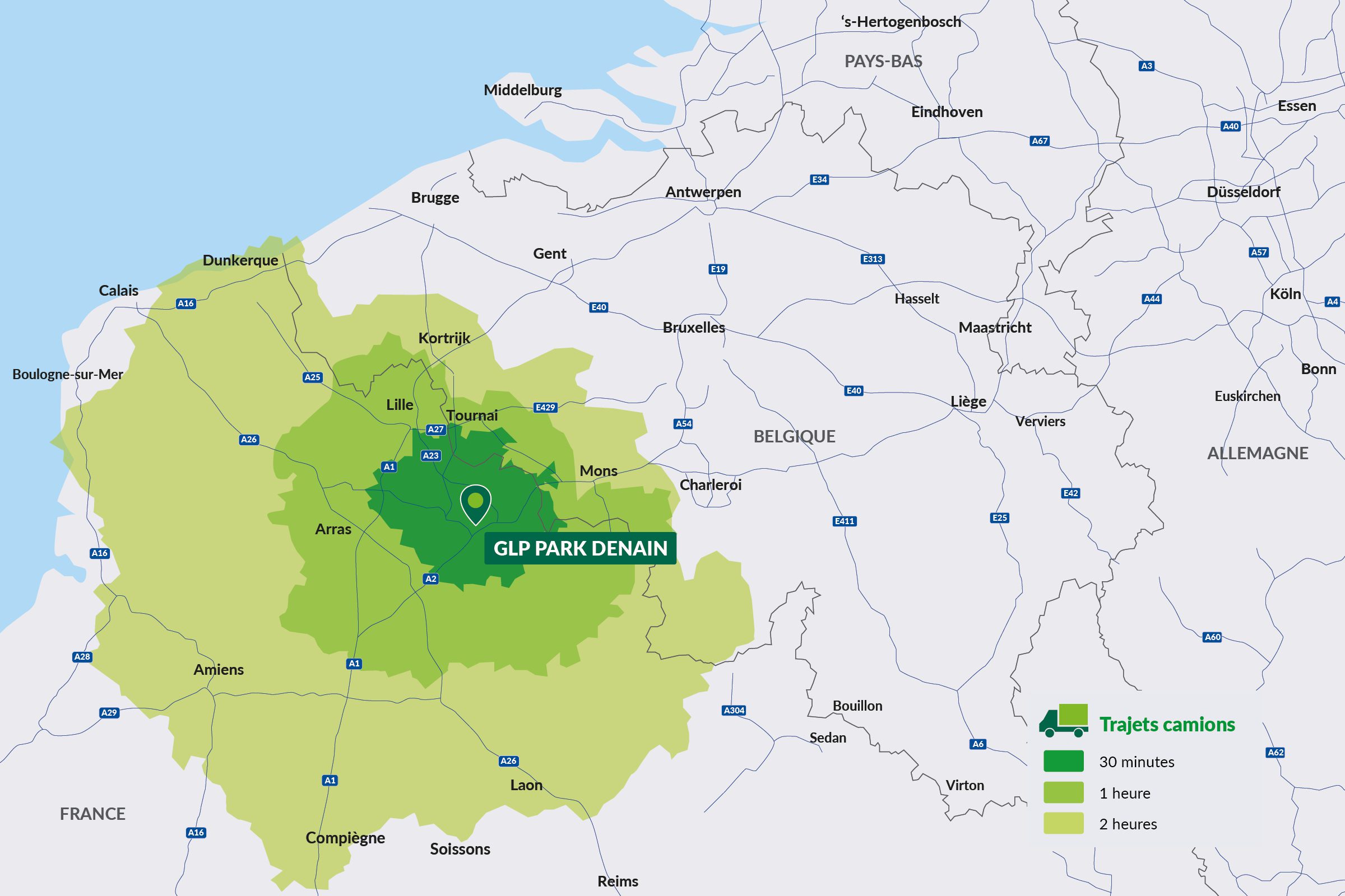 Denain is a French city located in the Nord department that benefits from an exceptional geographical location at the heart of the French logistics corridor. The Pierres Blanches business park is ideally located at the intersection of the A2 and A21 freeways.