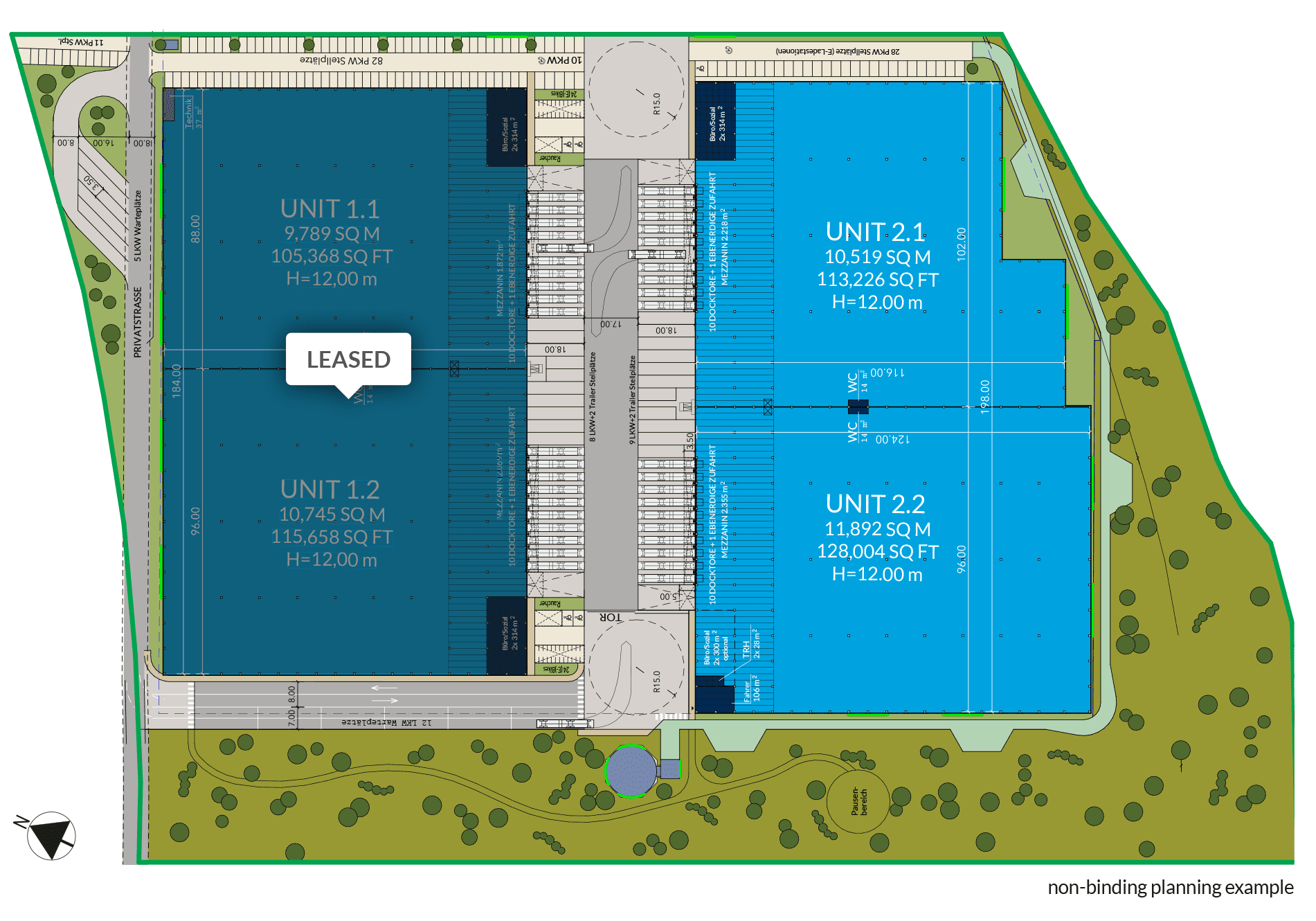 | Trailer Parking Spaces | 9 + 2 Trailer |