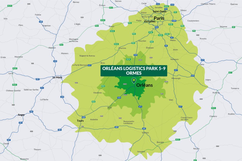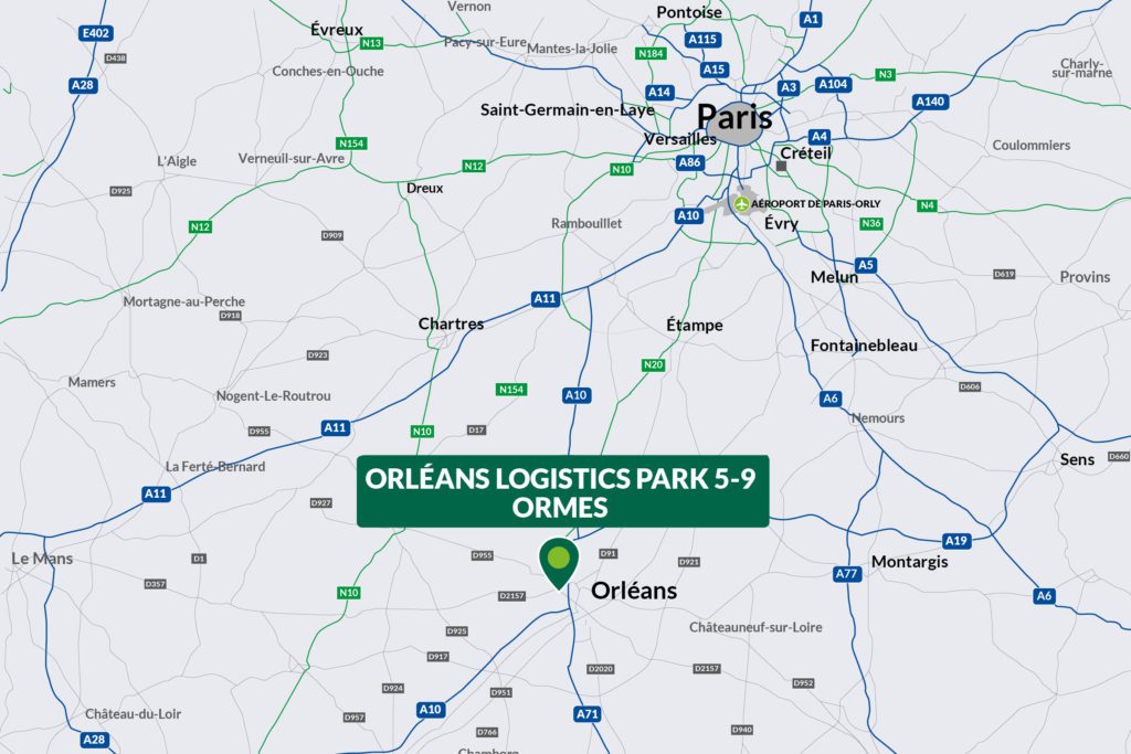 Orléans Logistics Park 1 – Ormes propose 4 633 m² de surface logistique disponible à la location, dans un bâtiment situé au cœur du pôle logistique « Prime » d’Orléans. À seulement 1h30 de Paris et 20 minutes du centre d’Orléans, le site bénéficie d’un accès direct à l’A10, garantissant une connectivité optimale aux grands axes nationaux et européens.