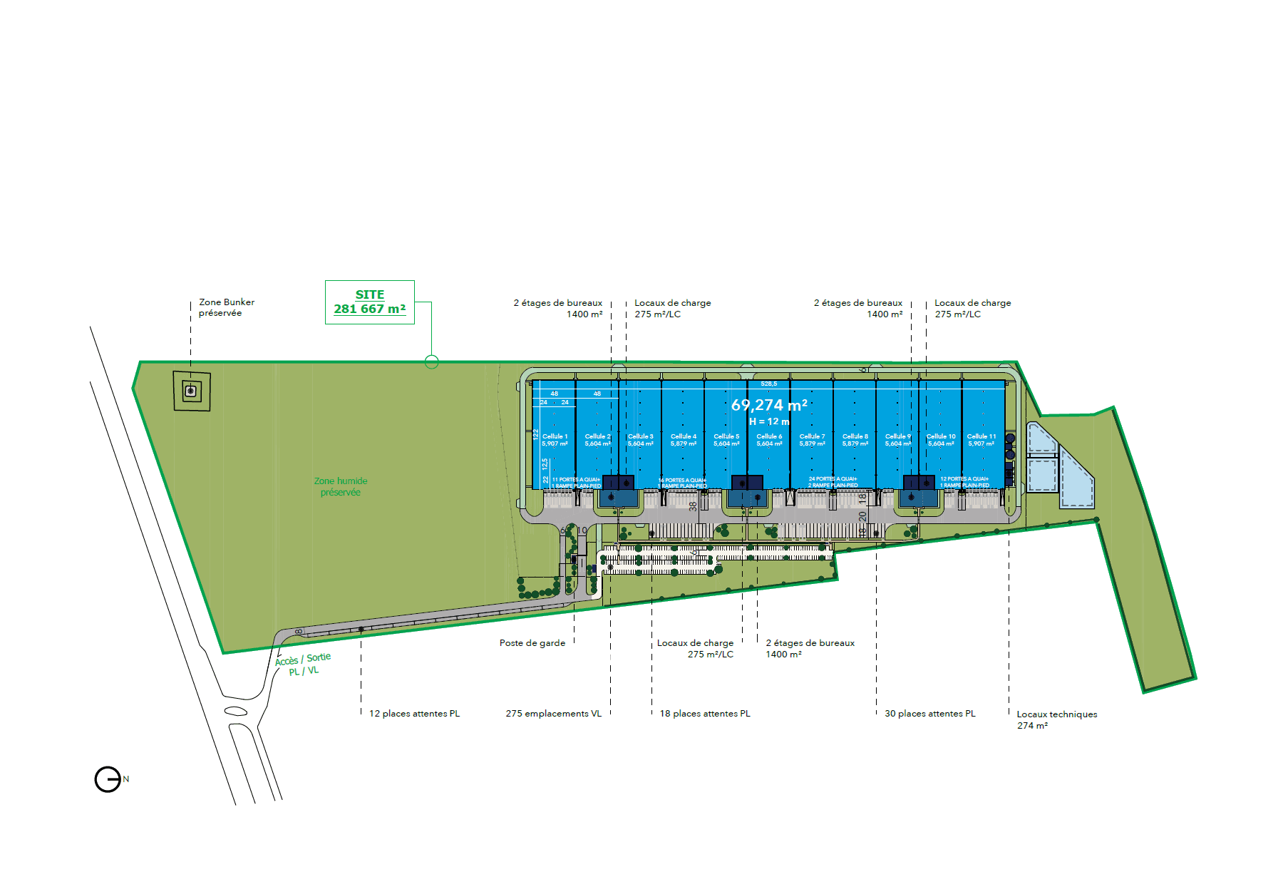 | Entrepôt (11 cellules) | 63 075 m² (678,933 sq ft) |