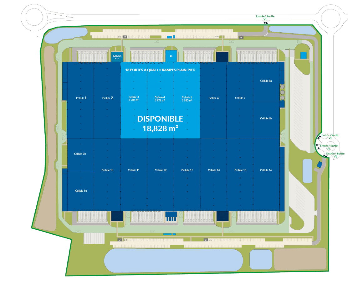GLP Park Ablaincourt offers 18,828 m² of logistics space available for lease within a modern facility certified BREEAM Very Good. Ideally located near the A1 and A29 motorways, the site provides excellent connectivity to major European logistics hubs including Paris, Lille, and the ports of Dunkirk, Calais, Le Havre, and Antwerp.