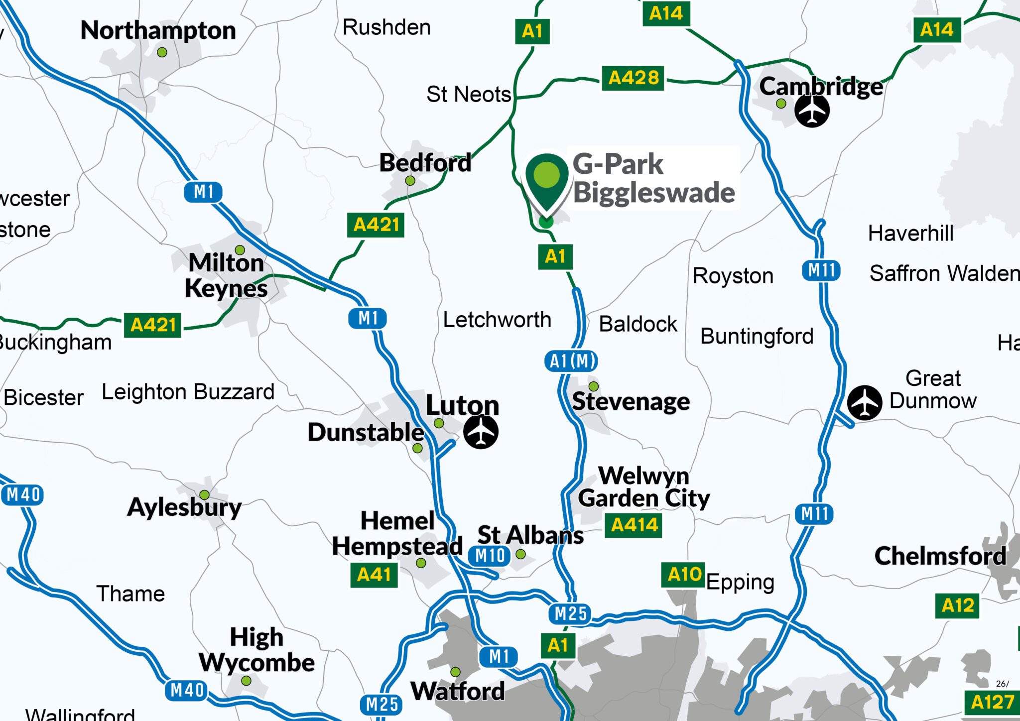 G-Park Biggleswade, Unit 2 offers unparalleled access to major transport arteries, ensuring seamless connectivity across the UK.