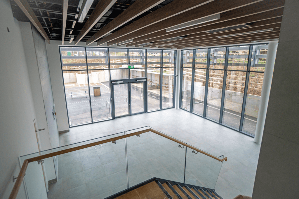 G-Park Stevenage is built to net zero carbon standards, featuring PV roof panels, intelligent LED lighting, and water harvesting systems. It also supports battery storage and environmental analytics, aligning with GLP’s commitment to sustainable industrial and logistics real estate.