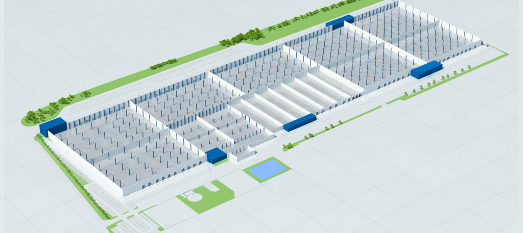 Units A2 to A10 offer a total area of 21,510 m², including 21,390 m² of warehouse space and 120 m² of office and social areas. Available from Q1 2026, they feature a clear height of 6 to 10 m, floor load capacity of 5 t/m², 11 dock doors, 3 ground-level doors, and 65 car parking spaces.