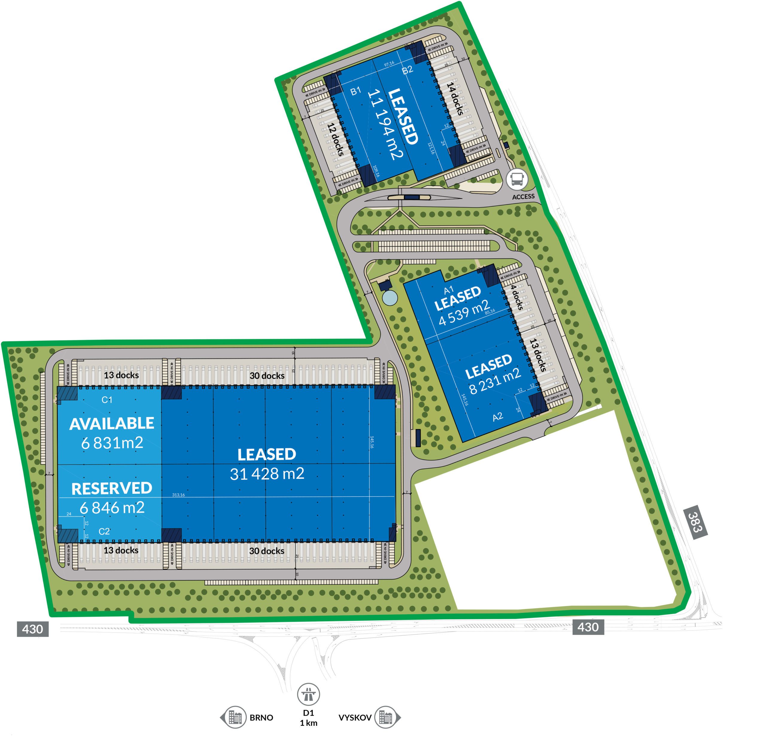 The location has been strategically selected as being the prime junction between Prague, Ostrava, Poland, Bratislava, Trenčín and Vienna. This makes it ideal for manufacturing and logistics operations.