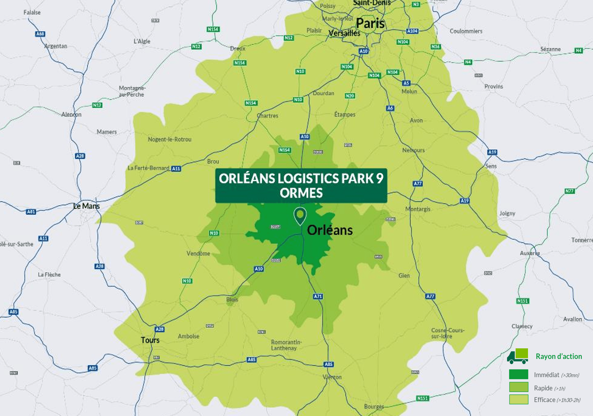 Ormes is the “Prime” logistics zone of Orleans, an established logistics market benefiting from its proximity to Paris, a significant consumer base and a skilled workforce. Moreover, the vacancy rate is below the national average with some quality offers.